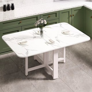 오아루 접이식 확장형 주방 식탁 테이블, 4인용, 마블 화이트+화이트 프레임