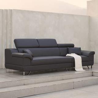 [초특가] 바로방가구 오스카 4인용 신소재 가죽소파 헤드레스트 인조가죽 거실 4인 쇼파, 네이비, 스툴 미포함