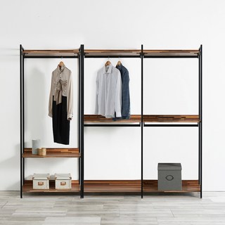 동서가구 디케로 블랙 시스템행거 철제 드레스룸 2400 1단 행거 모듈 옷장 세트 DF924851, 멀바우