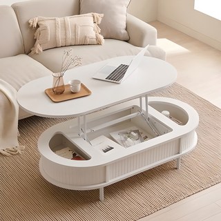 [삼익가구]웨이즈 타원형 템바보드 리프트업 소파 테이블 1200, 화이트