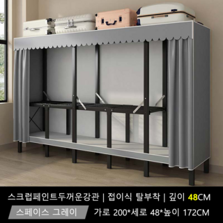 심플한 옷장 홈 침실 두껍고 굵은 철제 프레임 접이식, 스페이스 그레이