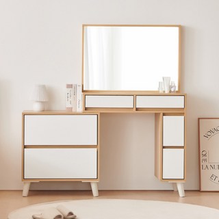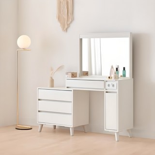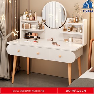 TIXPRA 예쁜 화장대 세트 멀티수납형 화장대+서랍장+거울, 흰색 100cm