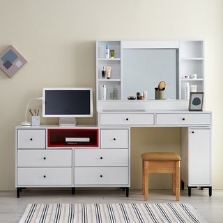 퍼니하우스 헤라 확장형 와이드 서랍형 화이트 안방 거실 수납 책상 화장대 일반화장대