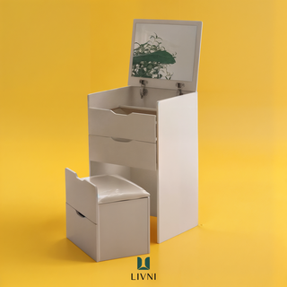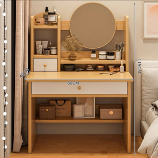 Sonipure 화장대 다용도 수납 +화장 거울 침실 스탠드 소형 화장대, 화이트 (LED 없음)