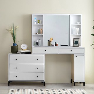 [와우할인 단독특가] 풀하우스 라헬 익스텐션 수납 서랍 정리함 콘솔 화장대 거울세트, 03.올화이트