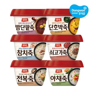 동원 양반죽 용기 6종 (전복죽4+쇠고기죽4+단호박죽4+밤단팥죽4+야채죽4+참치죽4) 총24입, 1세트