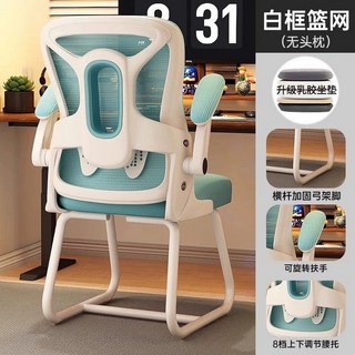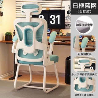 컴퓨터 의자 편안한 인체 공학 전자 등받이 의자, 강철발, 90도 난간, 화이트+블루+헤드 8단 척추 스폰지