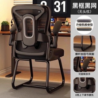컴퓨터 의자 편안한 인체 공학 전자 등받이 의자, 강철발, 90도 난간, 블랙+블랙 8단 척추 라텍스