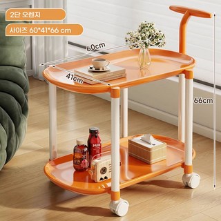 태영스토어 2단 파스텔톤 이동식 핸들 사이드테이블, 오렌지
