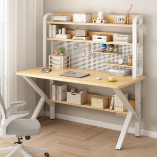 편안홈 다기능 철제 책상 오피스데스크 컴퓨터책상 업그레이드 타공보드, 원목 화이트