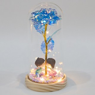 VITALO 각인 커스텀 무선 프로포즈 크리스탈 LED 무드등 인테리어소품 기념일선물 프로포즈선물, 01.뽀뽀(블루로즈)