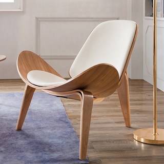 엘루소 모레오 쉘체어 윙디자인 카페의자 원목 가죽 인테리어의자 라운지, 1개, 화이트