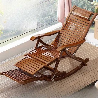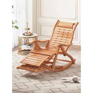 대나무 흔들 의자 안락 접이식 높이 조절 마사지 소파 발코니 낮잠 누운 체어 브라운, 1개