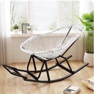 ARAR 라탄흔들의자 1인용 리클라이너 스윙체어 안락의자, 화이트