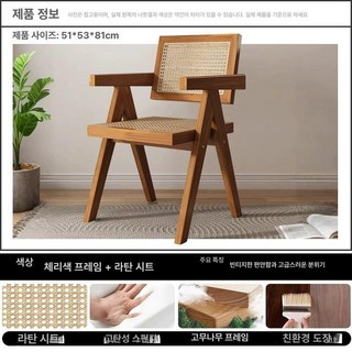 핸즈 라탄 체어 원목 케인 인테리어 카페 식탁 의자, 목판방석, 1개