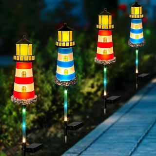 태양광 조명 야외 방수 등대 4팩 정원 산책로 잔디밭 화단 파티오 장식에 적합한 7가지 색상 변경, Lighthouse 4