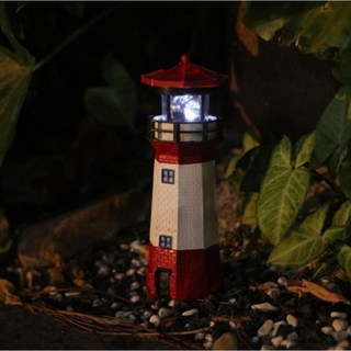 태양열 등대 무드등 회전 조명 가든 인테리어 소품, 등대레드