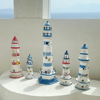 여름 레드블루 지중해 등대 빈티지 모형 장식 30cm 인테리어 소품 디자인 아이디어 상품