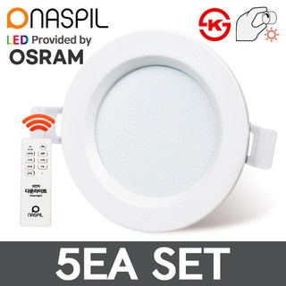 나스필 LED 다운라이트 3인치 리모컨 포함 디밍 매입등 5W 확산형 밝기조절 오스람칩 매립등 세트, 전구색(노란빛) X 3EA, 3개