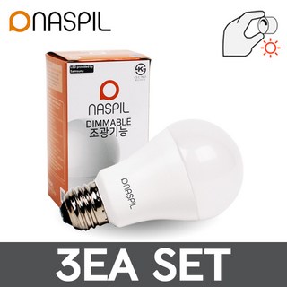 나스필 LED전구 디밍 전구 12W 밝기조절 램프 삼성칩 세트, 3개, 전구색