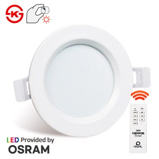 나스필 LED 다운라이트 3인치 리모컨 포함 디밍 매입등 5W 확산형 밝기조절 오스람칩 매립등, 리모컨 포함 주광색, 1개