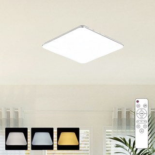 국산 감성 LED 거실등 150W 색변환 리모컨 방등 삼색변환 사각방등 플리커프리 디밍 밝기조절
