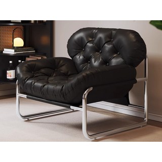 이탈리아 모던 싱글 소파 의자 1인쇼파 디자이너 고급 패브릭 가죽 레저용 거실 북유럽, 블랙 1급 소가죽