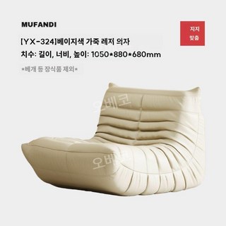 가죽안락의자 빈백소파 싱글쇼파 디자이너 거실 고급 1인용 등받이 좌식, 베이지