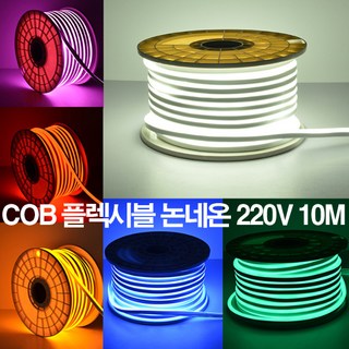 케이시조명 LED COB 스트립 플렉시블 논네온 조명 줄조명 간접등 220V 10M (전원+부속+마감캡 포함), 노란불(3000K), 1개