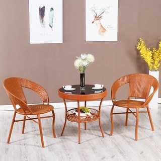 라보야 라탄 테이블 의자 2개 세트 야외 발코니 카페 커피 티테이블 원형, 브라운테이블 + 의자2개 세트