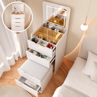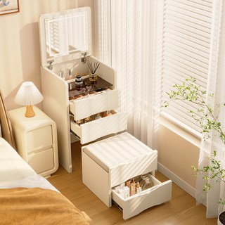 Paradoma 미니 화장대 심플 침실 친환경 소재 수납 일체형 간이 화장대 캐비닛, 아이보리색
