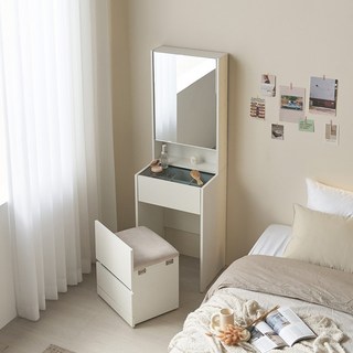 주빌리 지니아 수납거울 화장대 스툴세트 틈새수납장 틈새 화장대, 거울+스툴+화장대세트, 600 서랍장 미포함