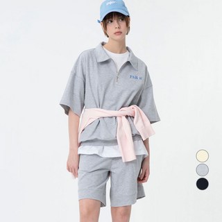 ELLE PARIS 하프집업 그래픽 반팔 맨투맨 + 쇼츠 세트