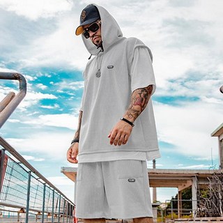 남성 와플 반팔 레이어드 후드 트레이닝세트 WI109SET
