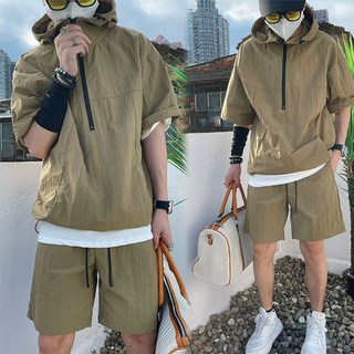 여름 남자 츄리닝 상하의세트 아노락 데일리룩 카고 반팔 반바지 오버핏 트레이닝복 반지퍼 후드티 캐주얼 5부바지