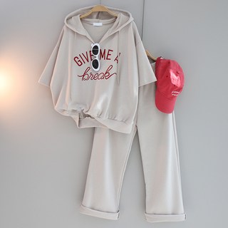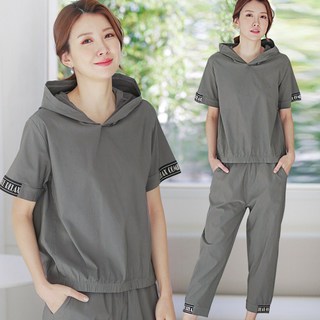 달콩 기브후드맨투와이드팬츠세트 여성 빅사이즈 상하의세트 허리밴딩 긴바지 반팔 운동복 여름츄리닝세트